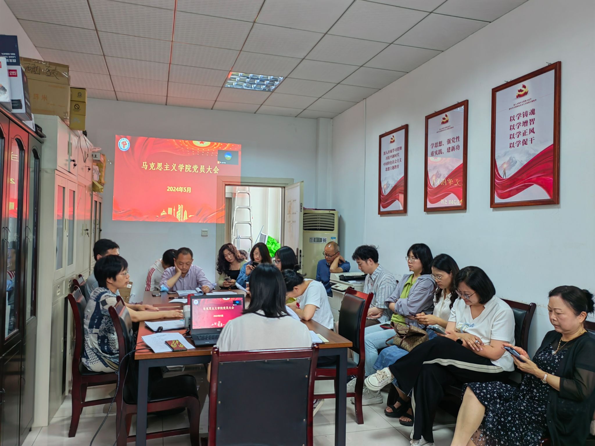 5月17日,马克思主义学院教师党支部召开了讨论接收杨筱妍为预备党员的党员大会。会议由党支部书记周波主持。